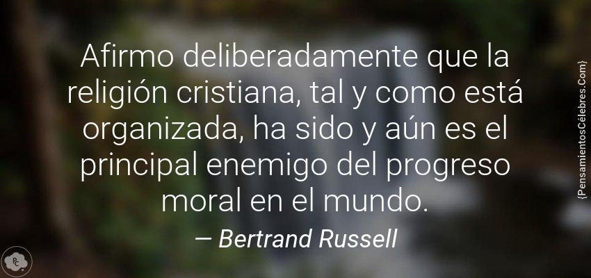"Afirmo deliberadamente que la religión cristiana, tal y como está organizada, ha sido y aún es el principal enemigo del progreso moral en el mundo."