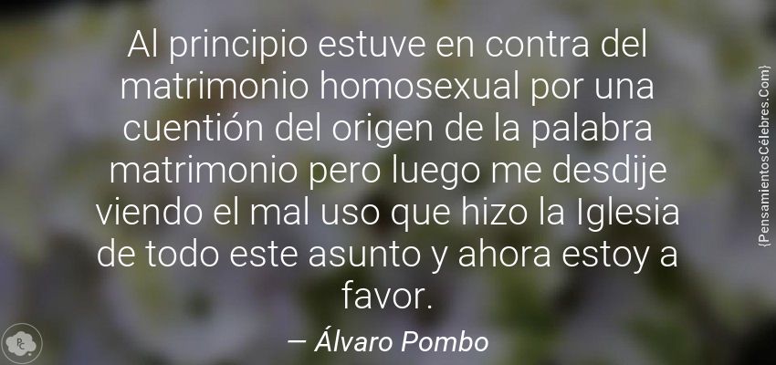 "Al principio estuve en contra del matrimonio homosexual por una cuentión del origen de la palabra matrimonio pero luego me desdije viendo el mal uso que hizo la Iglesia de todo este asunto y ahora estoy a favor."
