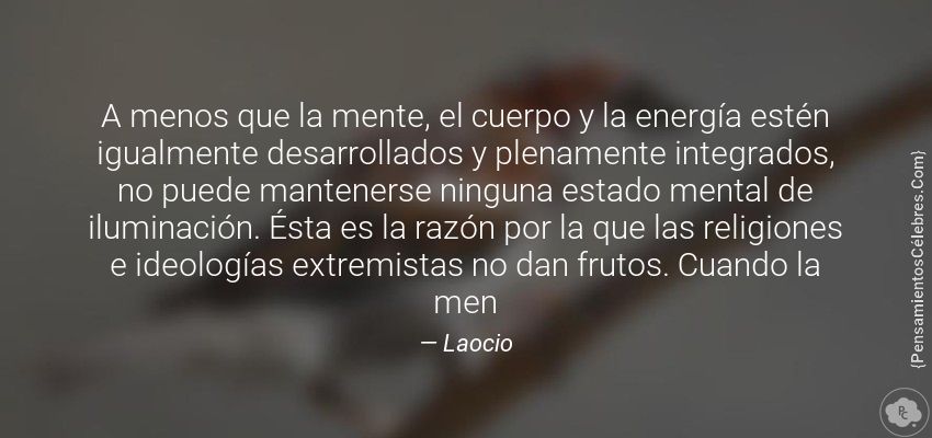 "A menos que la mente, el cuerpo y la energía estén igualmente desarrollados y plenamente integrados, no puede mantenerse ninguna estado mental de iluminación. Ésta es la razón por la que las religiones e ideologías extremistas no dan frutos. Cuando la men"