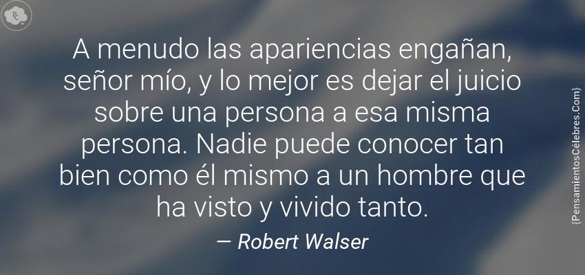 "A menudo las apariencias engañan, señor mío, y lo mejor es dejar el juicio sobre una persona a esa misma persona. Nadie puede conocer tan bien como él mismo a un hombre que ha visto y vivido tanto."