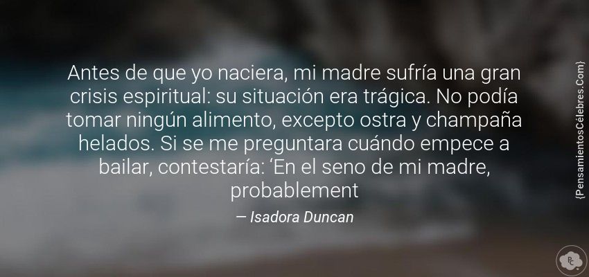 "Antes de que yo naciera, mi madre sufría una gran crisis espiritual: su situación era trágica. No podía tomar ningún alimento, excepto ostra y champaña helados. Si se me preguntara cuándo empece a bailar, contestaría: ‘En el seno de mi madre, probablement"