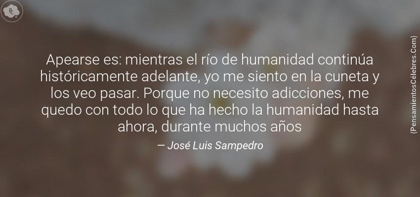 "Apearse es: mientras el río de humanidad continúa históricamente adelante, yo me siento en la cuneta y los veo pasar. Porque no necesito adicciones, me quedo con todo lo que ha hecho la humanidad hasta ahora, durante muchos años"