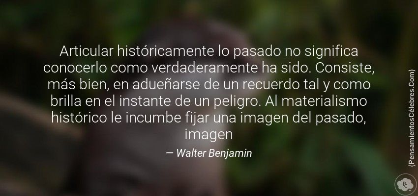 "Articular históricamente lo pasado no significa conocerlo como verdaderamente ha sido. Consiste, más bien, en adueñarse de un recuerdo tal y como brilla en el instante de un peligro. Al materialismo histórico le incumbe fijar una imagen del pasado, imagen"