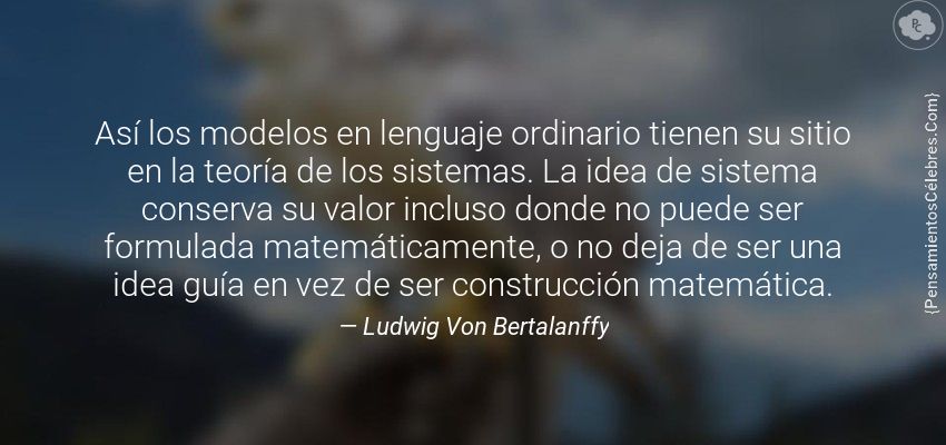 "Así los modelos en lenguaje ordinario tienen su sitio en la teoría de los sistemas. La idea de sistema conserva su valor incluso donde no puede ser formulada matemáticamente, o no deja de ser una idea guía en vez de ser construcción matemática."