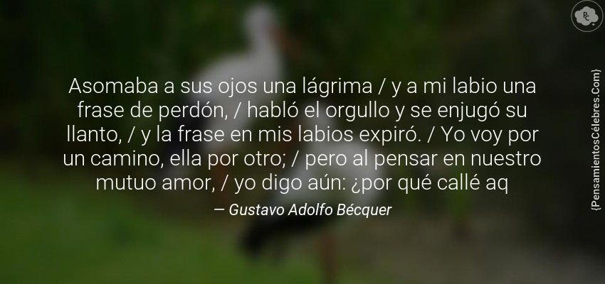 "Asomaba a sus ojos una lágrima / y a mi labio una frase de perdón, / habló el orgullo y se enjugó su llanto, / y la frase en mis labios expiró. / Yo voy por un camino, ella por otro; / pero al pensar en nuestro mutuo amor, / yo digo aún: ¿por qué callé aq"