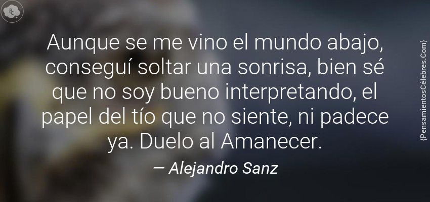 "Aunque se me vino el mundo abajo, conseguí soltar una sonrisa, bien sé que no soy bueno interpretando, el papel del tío que no siente, ni padece ya. Duelo al Amanecer."
