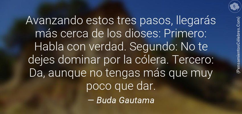 "Avanzando estos tres pasos, llegarás más cerca de los dioses: Primero: Habla con verdad. Segundo: No te dejes dominar por la cólera. Tercero: Da, aunque no tengas más que muy poco que dar."
