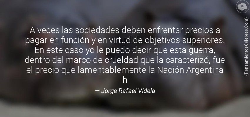 "A veces las sociedades deben enfrentar precios a pagar en función y en virtud de objetivos superiores. En este caso yo le puedo decir que esta guerra, dentro del marco de crueldad que la caracterizó, fue el precio que lamentablemente la Nación Argentina h"