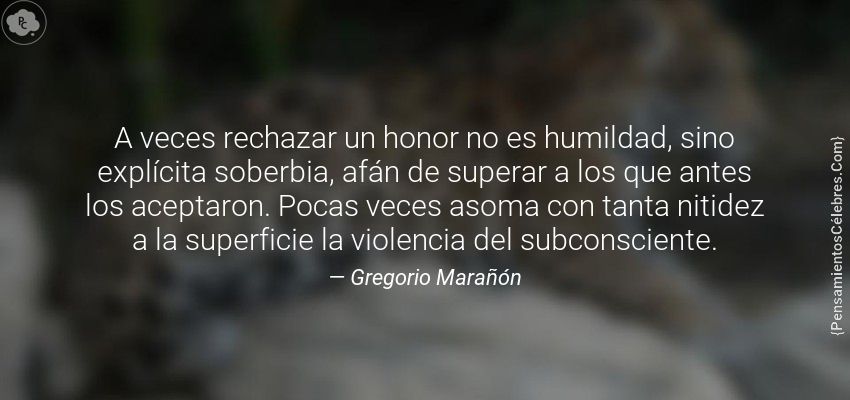 "A veces rechazar un honor no es humildad, sino explícita soberbia, afán de superar a los que antes los aceptaron. Pocas veces asoma con tanta nitidez a la superficie la violencia del subconsciente."