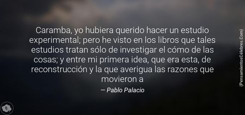 Caramba, yo hubiera querido hacer un estudio experimental; pero he visto en los libros que tales estudios tratan sólo de investigar el cómo de las cosas; y entre mi primera idea, que era esta, de reconstrucción y la que averigua las razones que movieron a