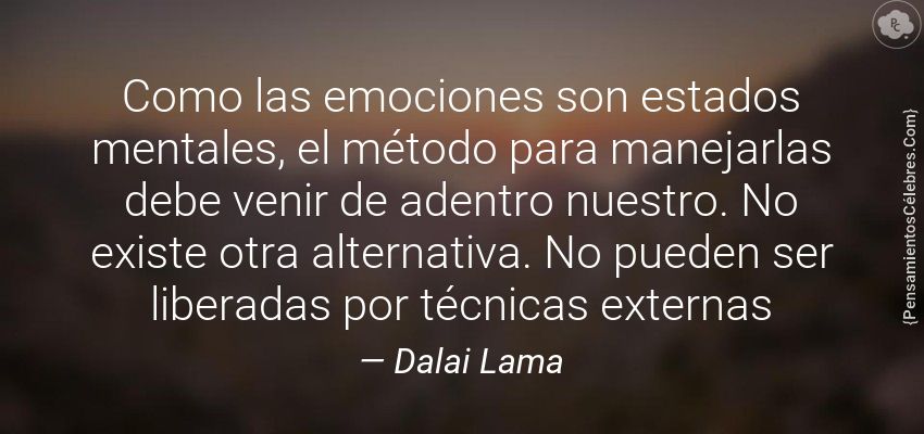 "Como las emociones son estados mentales, el método para manejarlas debe venir de adentro nuestro. No existe otra alternativa. No pueden ser liberadas por técnicas externas"