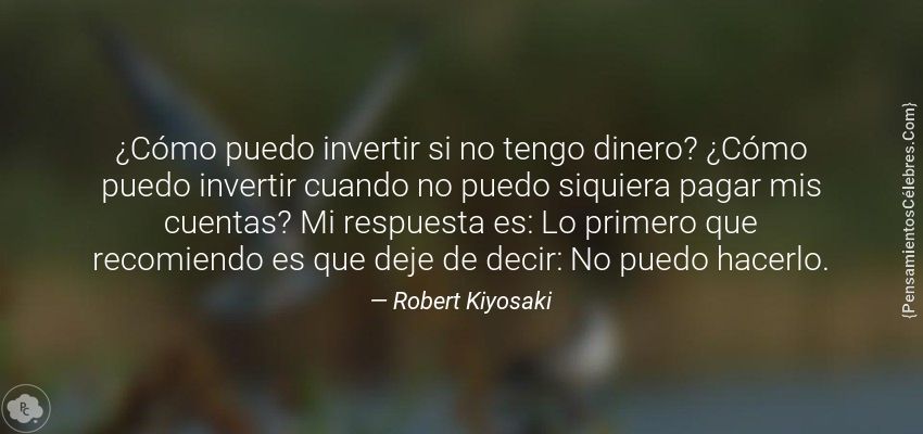 "¿Cómo puedo invertir si no tengo dinero? ¿Cómo puedo invertir cuando no puedo siquiera pagar mis cuentas? Mi respuesta es: Lo primero que recomiendo es que deje de decir: No puedo hacerlo."