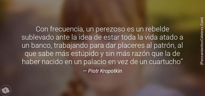 "Con frecuencia, un perezoso es un rebelde sublevado ante la idea de estar toda la vida atado a un banco, trabajando para dar placeres al patrón, al que sabe más estúpido y sin más razón que la de haber nacido en un palacio en vez de un cuartucho”"