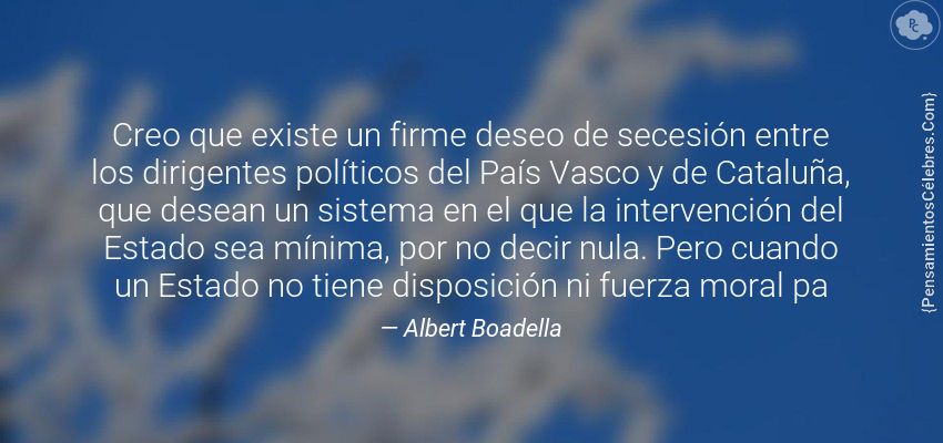 "Creo que existe un firme deseo de secesión entre los dirigentes políticos del País Vasco y de Cataluña, que desean un sistema en el que la intervención del Estado sea mínima, por no decir nula. Pero cuando un Estado no tiene disposición ni fuerza moral pa"