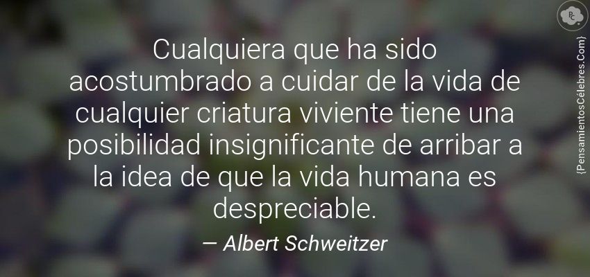 "Cualquiera que ha sido acostumbrado a cuidar de la vida de cualquier criatura viviente tiene una posibilidad insignificante de arribar a la idea de que la vida humana es despreciable."