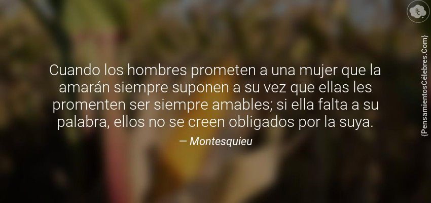 "Cuando los hombres prometen a una mujer que la amarán siempre suponen a su vez que ellas les promenten ser siempre amables; si ella falta a su palabra, ellos no se creen obligados por la suya."