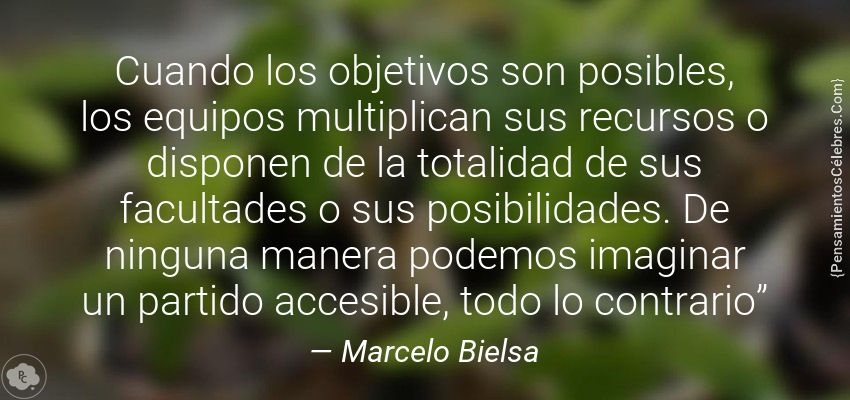 "Cuando los objetivos son posibles, los equipos multiplican sus recursos o disponen de la totalidad de sus facultades o sus posibilidades. De ninguna manera podemos imaginar un partido accesible, todo lo contrario”"
