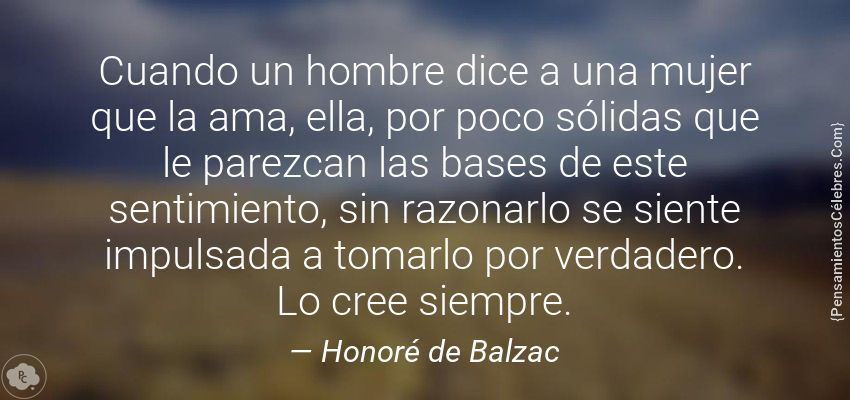 "Cuando un hombre dice a una mujer que la ama, ella, por poco sólidas que le parezcan las bases de este sentimiento, sin razonarlo se siente impulsada a tomarlo por verdadero. Lo cree siempre."