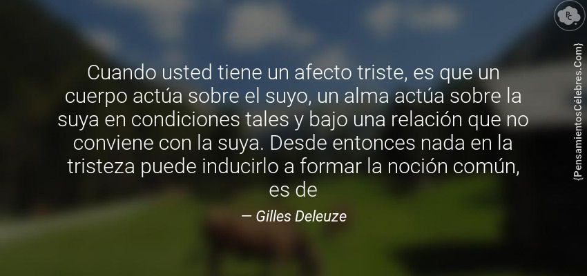 "Cuando usted tiene un afecto triste, es que un cuerpo actúa sobre el suyo, un alma actúa sobre la suya en condiciones tales y bajo una relación que no conviene con la suya. Desde entonces nada en la tristeza puede inducirlo a formar la noción común, es de"