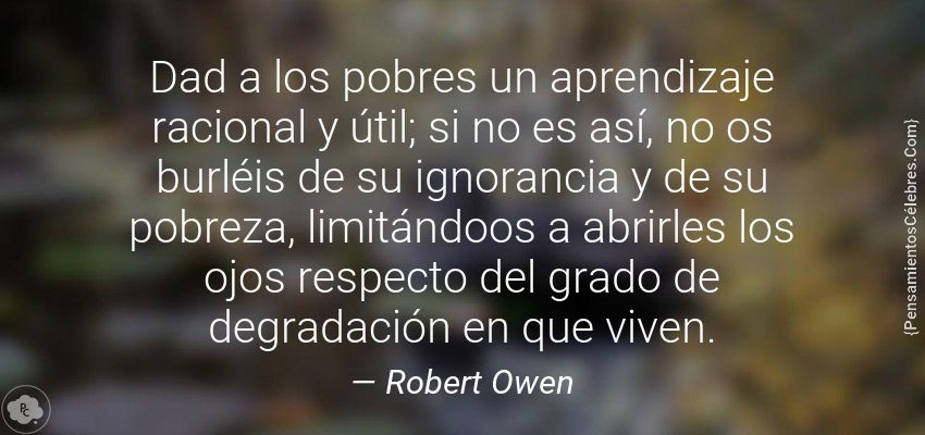"Dad a los pobres un aprendizaje racional y útil; si no es así, no os burléis de su ignorancia y de su pobreza, limitándoos a abrirles los ojos respecto del grado de degradación en que viven."