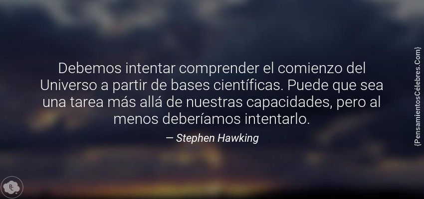 "Debemos intentar comprender el comienzo del Universo a partir de bases científicas. Puede que sea una tarea más allá de nuestras capacidades, pero al menos deberíamos intentarlo."