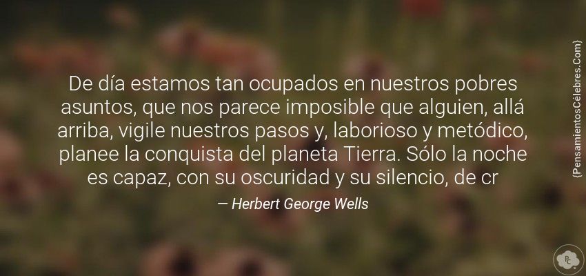 "De día estamos tan ocupados en nuestros pobres asuntos, que nos parece imposible que alguien, allá arriba, vigile nuestros pasos y, laborioso y metódico, planee la conquista del planeta Tierra. Sólo la noche es capaz, con su oscuridad y su silencio, de cr"