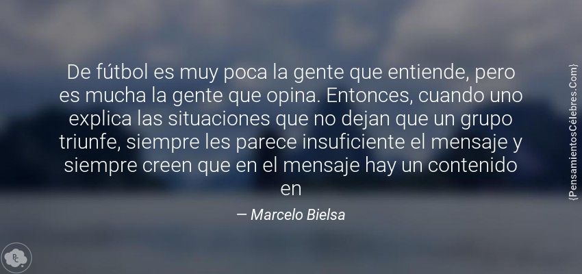 "De fútbol es muy poca la gente que entiende, pero es mucha la gente que opina. Entonces, cuando uno explica las situaciones que no dejan que un grupo triunfe, siempre les parece insuficiente el mensaje y siempre creen que en el mensaje hay un contenido en"