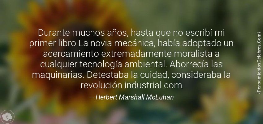 "Durante muchos años, hasta que no escribí mi primer libro La novia mecánica, había adoptado un acercamiento extremadamente moralista a cualquier tecnología ambiental. Aborrecía las maquinarias. Detestaba la cuidad, consideraba la revolución industrial com"