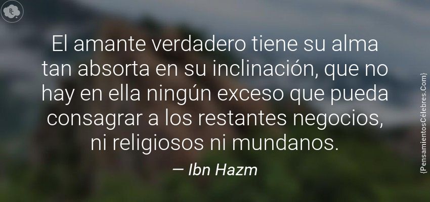 "El amante verdadero tiene su alma tan absorta en su inclinación, que no hay en ella ningún exceso que pueda consagrar a los restantes negocios, ni religiosos ni mundanos."