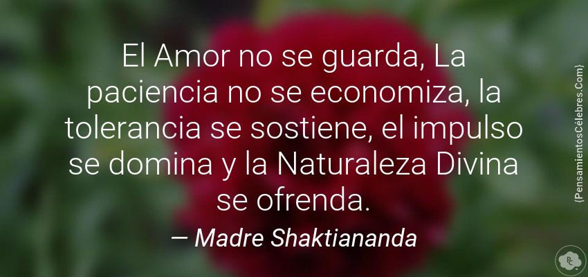 "El Amor no se guarda, La paciencia no se economiza, la tolerancia se sostiene, el impulso se domina y la Naturaleza Divina se ofrenda."