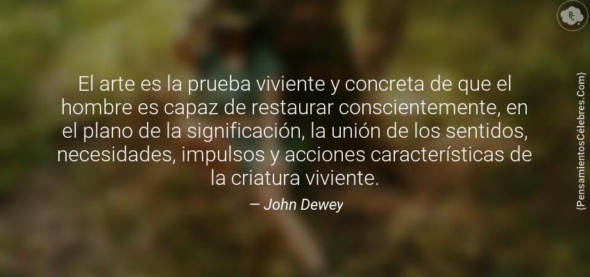 "El arte es la prueba viviente y concreta de que el hombre es capaz de restaurar conscientemente, en el plano de la significación, la unión de los sentidos, necesidades, impulsos y acciones características de la criatura viviente."