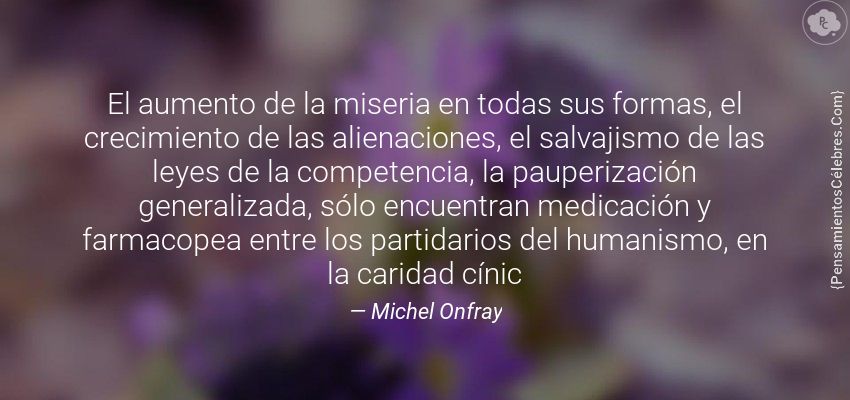 "El aumento de la miseria en todas sus formas, el crecimiento de las alienaciones, el salvajismo de las leyes de la competencia, la pauperización generalizada, sólo encuentran medicación y farmacopea entre los partidarios del humanismo, en la caridad cínic"