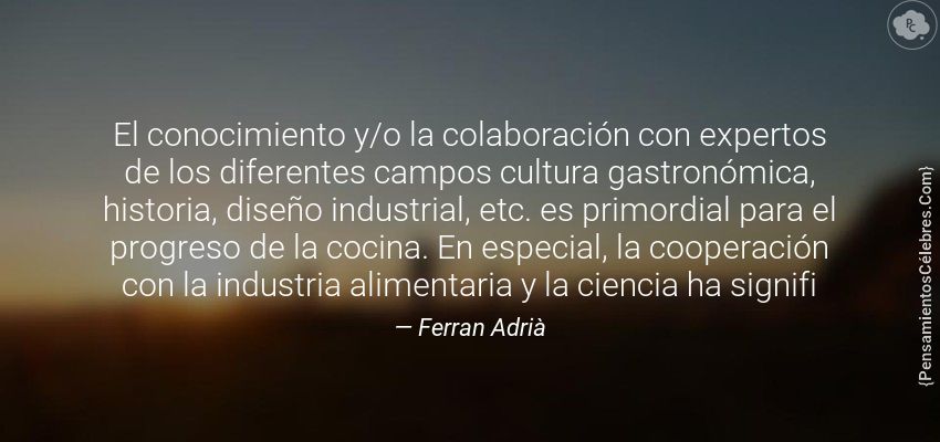"El conocimiento y/o la colaboración con expertos de los diferentes campos cultura gastronómica, historia, diseño industrial, etc. es primordial para el progreso de la cocina. En especial, la cooperación con la industria alimentaria y la ciencia ha signifi"