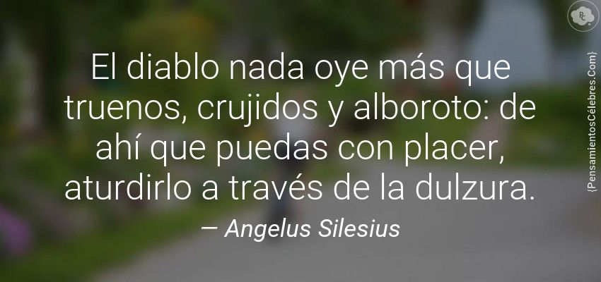 "El diablo nada oye más que truenos, crujidos y alboroto: de ahí que puedas con placer, aturdirlo a través de la dulzura."