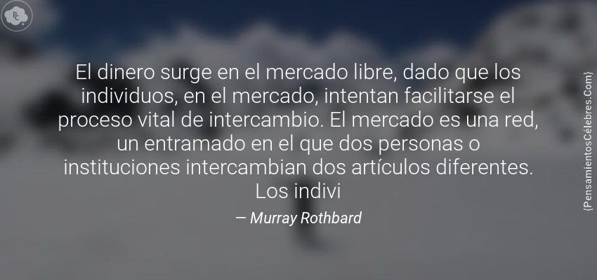 "El dinero surge en el mercado libre, dado que los individuos, en el mercado, intentan facilitarse el proceso vital de intercambio. El mercado es una red, un entramado en el que dos personas o instituciones intercambian dos artículos diferentes. Los indivi"