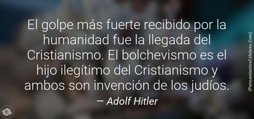 "El golpe más fuerte recibido por la humanidad fue la llegada del Cristianismo. El bolchevismo es el hijo ilegítimo del Cristianismo y ambos son invención de los judíos."