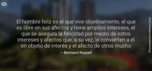 El hombre feliz es el que vive objetivamente, el que es libre en sus afectos y tiene amplios intereses, el que se asegura la felicidad por medio de estos intereses y afectos que, a su vez, le convierten a él en objeto de interés y el afecto de otros mucho