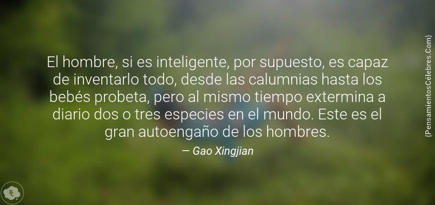 "El hombre, si es inteligente, por supuesto, es capaz de inventarlo todo, desde las calumnias hasta los bebés probeta, pero al mismo tiempo extermina a diario dos o tres especies en el mundo. Este es el gran autoengaño de los hombres."