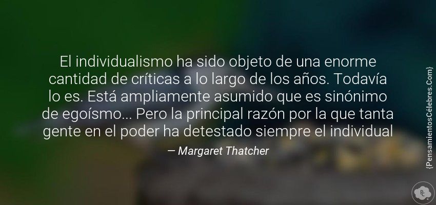 "El individualismo ha sido objeto de una enorme cantidad de críticas a lo largo de los años. Todavía lo es. Está ampliamente asumido que es sinónimo de egoísmo... Pero la principal razón por la que tanta gente en el poder ha detestado siempre el individual"