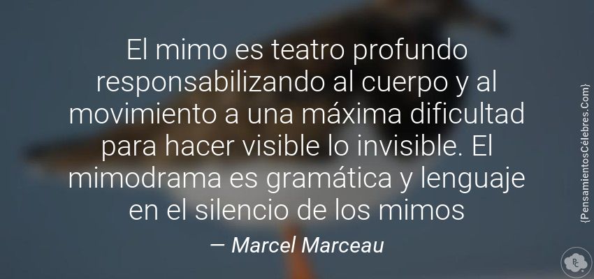 "El mimo es teatro profundo responsabilizando al cuerpo y al movimiento a una máxima dificultad para hacer visible lo invisible. El mimodrama es gramática y lenguaje en el silencio de los mimos"