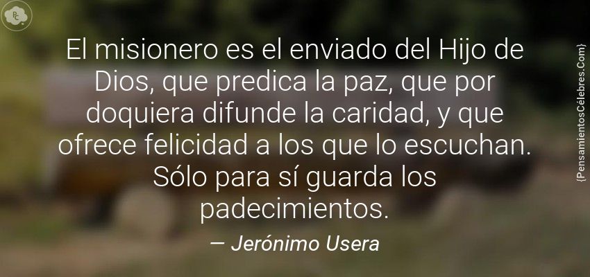 "El misionero es el enviado del Hijo de Dios, que predica la paz, que por doquiera difunde la caridad, y que ofrece felicidad a los que lo escuchan. Sólo para sí guarda los padecimientos."