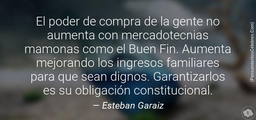 "El poder de compra de la gente no aumenta con mercadotecnias mamonas como el Buen Fin. Aumenta mejorando los ingresos familiares para que sean dignos. Garantizarlos es su obligación constitucional."