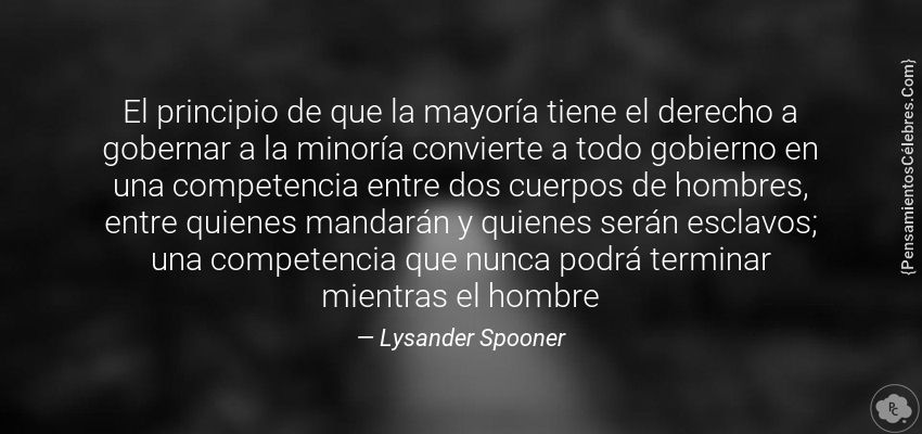 "El principio de que la mayoría tiene el derecho a gobernar a la minoría convierte a todo gobierno en una competencia entre dos cuerpos de hombres, entre quienes mandarán y quienes serán esclavos; una competencia que nunca podrá terminar mientras el hombre"