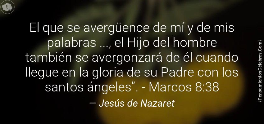 "El que se avergüence de mí y de mis palabras ..., el Hijo del hombre también se avergonzará de él cuando llegue en la gloria de su Padre con los santos ángeles”. - Marcos 8:38"