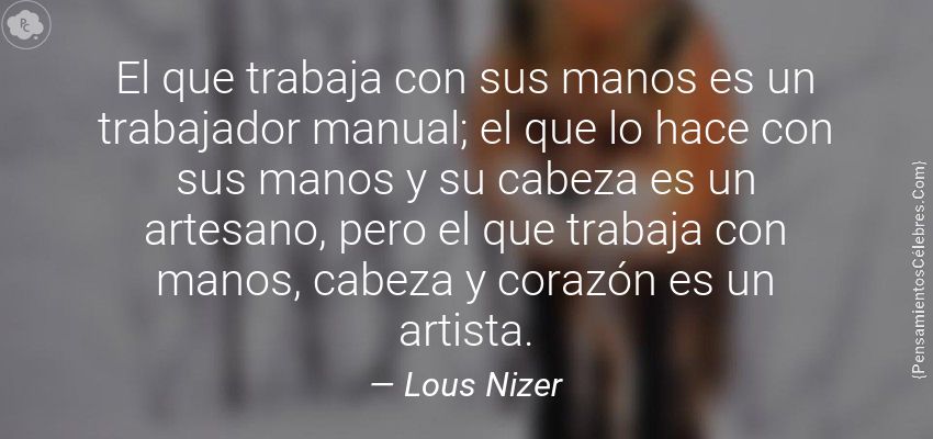 "El que trabaja con sus manos es un trabajador manual; el que lo hace con sus manos y su cabeza es un artesano, pero el que trabaja con manos, cabeza y corazón es un artista."