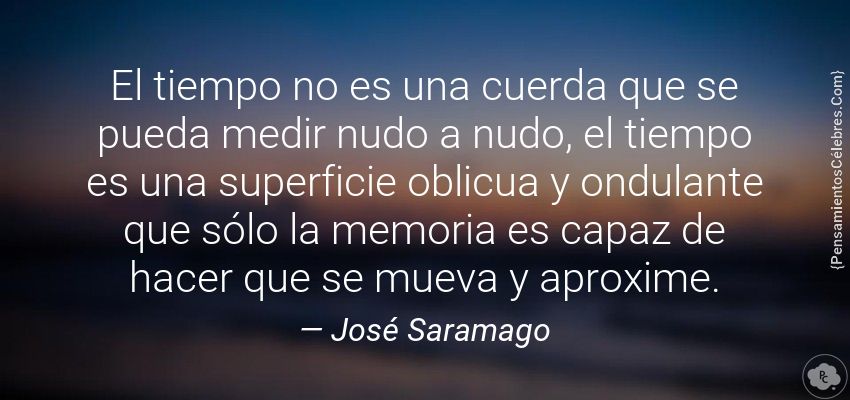 "El tiempo no es una cuerda que se pueda medir nudo a nudo, el tiempo es una superficie oblicua y ondulante que sólo la memoria es capaz de hacer que se mueva y aproxime."