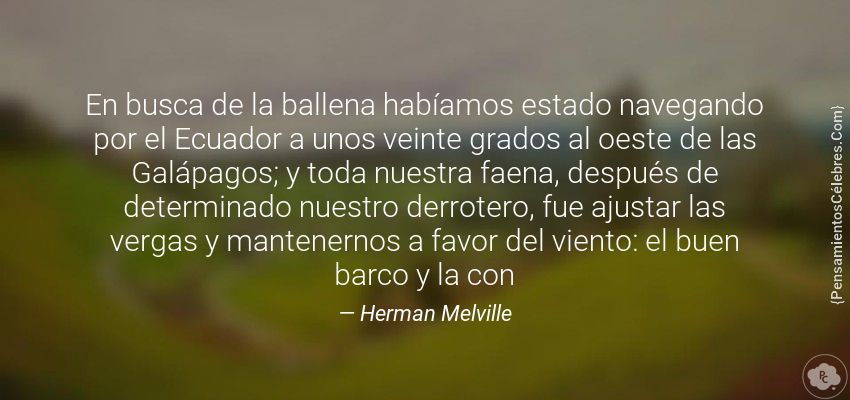 "En busca de la ballena habíamos estado navegando por el Ecuador a unos veinte grados al oeste de las Galápagos; y toda nuestra faena, después de determinado nuestro derrotero, fue ajustar las vergas y mantenernos a favor del viento: el buen barco y la con"