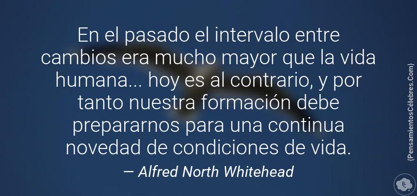 "En el pasado el intervalo entre cambios era mucho mayor que la vida humana... hoy es al contrario, y por tanto nuestra formación debe prepararnos para una continua novedad de condiciones de vida."