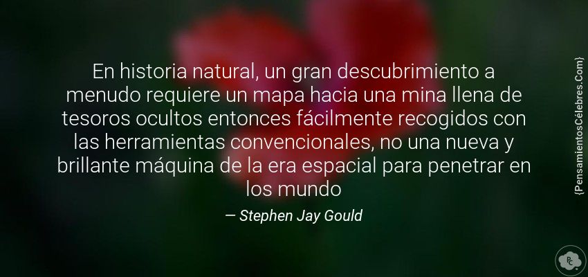 "En historia natural, un gran descubrimiento a menudo requiere un mapa hacia una mina llena de tesoros ocultos entonces fácilmente recogidos con las herramientas convencionales, no una nueva y brillante máquina de la era espacial para penetrar en los mundo"