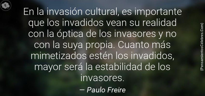 "En la invasión cultural, es importante que los invadidos vean su realidad con la óptica de los invasores y no con la suya propia. Cuanto más mimetizados estén los invadidos, mayor será la estabilidad de los invasores."